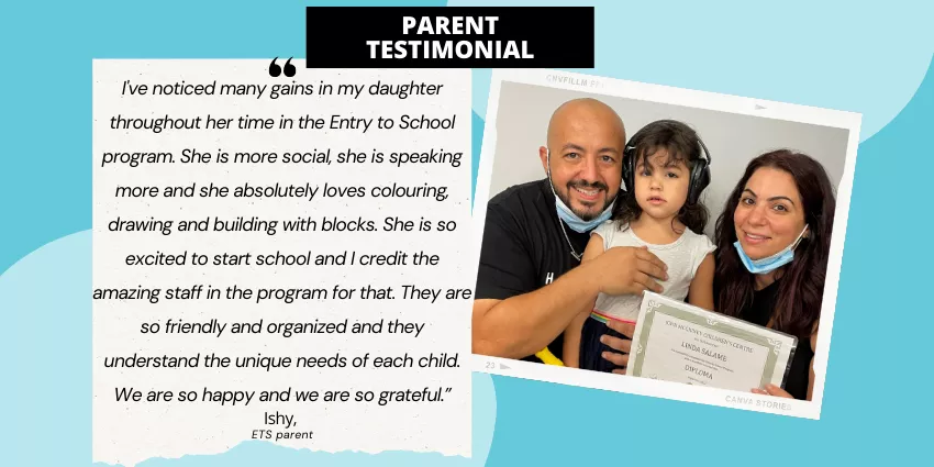 Earlier in the programming, staff asked parents to complete a short, confidential, online survey. Overall, 9 of 15 eligible families responded. JMCC is proud to report, that 100 per cent of parents whose child participates in the ETS program responded “YES” to the following: “I have seen positive changes in my child since starting Entry to School.”