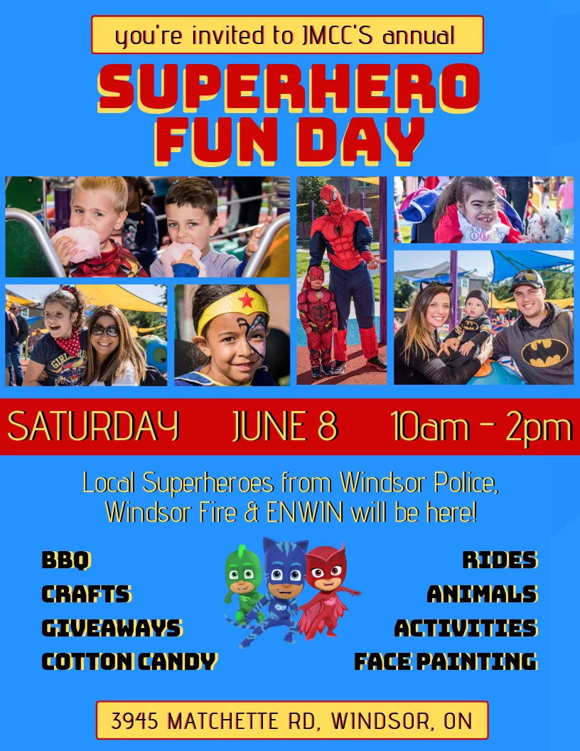 This year, local Superhero guests from Windsor Fire, Windsor Police and ENWIN will be here for kids and families to explore their vehicles, take rides in their lift trucks, check out their gear and more!